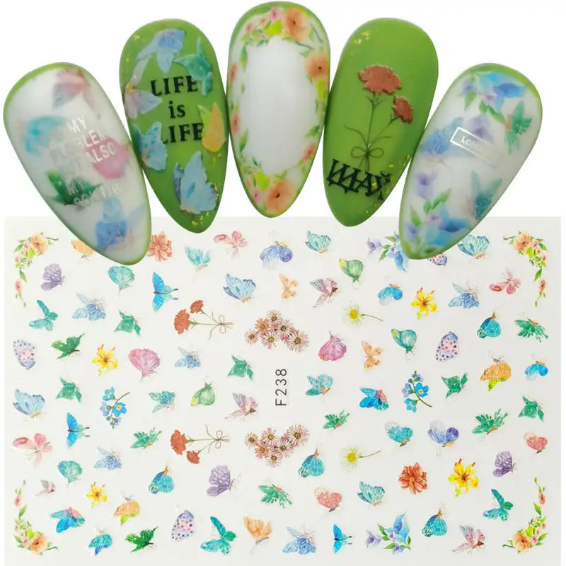 1 Sheet 3D Rose Nail Sticker Blooming Flower Butterfly Ultra-thin Adhesive Decals For Nails Art Decorations Manicure Accessories