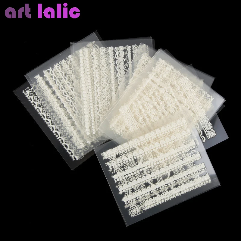 30 Sheet/lot White Lace Nail Stickers,3D Mix Design Transfer Nail Sticker, Random Nail Art Decals DIY Decoration