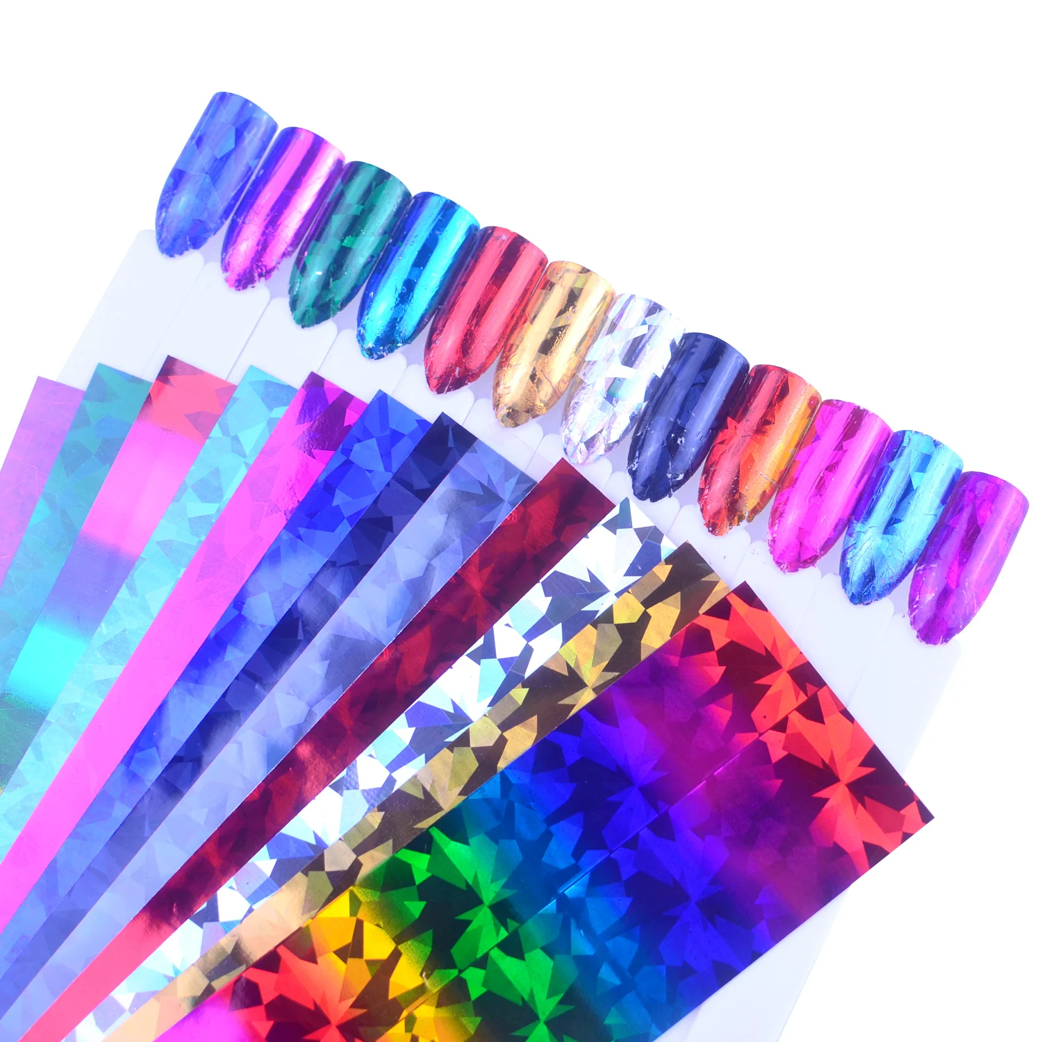 12 Sheets Gradient Starry Sky Nail Foil Laser AB Color Nail Art Transfer Sticker Art Decoration Decals Set Manicure sticker