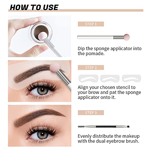 【Disegna le sopracciglia delicate più facilmente】Non spendere molto tempo per disegnare le sopracciglia, il nostro kit per modellare le sopracciglia in un unico passo lo rende più facile. Trova semplicemente lo stencil che ti piace, immergi la pomata per sopracciglia con applicatore di spugna sulle sopracciglia. otterrai la sopracciglia perfetta e chiara in pochi minuti!