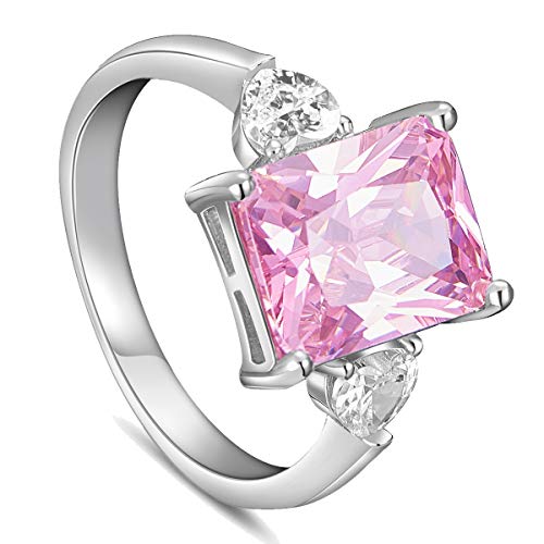 SHEGRACE Anello Donna con Pietra Rettangolare Rosa in Platino Placcato Argento 925 + Anello Zirconia Cubica 3A, Taglie Disponibii