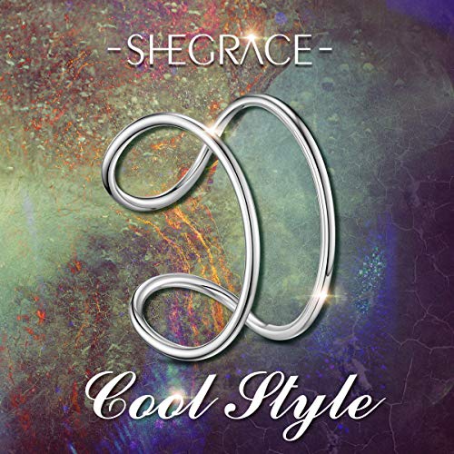 SHEGRACE Anello Doppio Regolabile Donna Semplice in Argento 925 Placcato Platino per Ragazze, Regalo Fidanzata