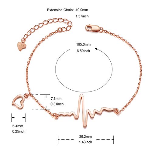 SHEGRACE Bracciale con Battito Cardiaco Bracciale da Donna in Argento 925 con Ciondolo a Forma Di Battito Cardiaco Placcato in Oro Rosa Regalo di Gioielli da Infermiera per le Donne, 180 mm
