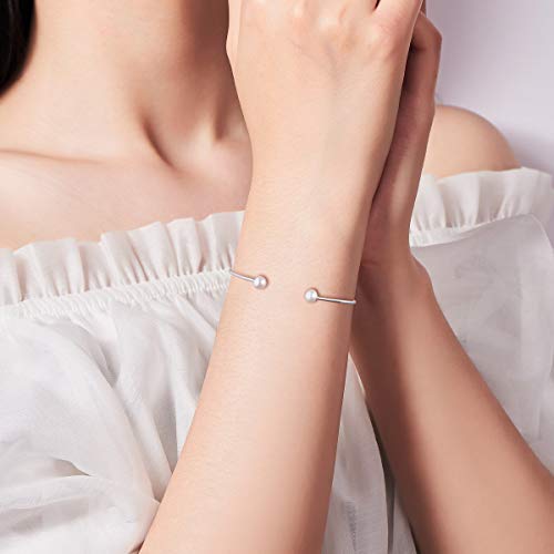 SHEGRACE Braccialetto 925 Argento di Moda, Perle di Conchiglia,Argento,360mm