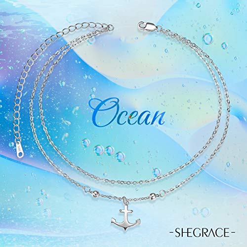 SHEGRACE Cavigliera Donna Doppio Strato con Ciondolo Ancora in Argento 925 Platino Placcato Platino Regolabile Estensibile da 80 mm