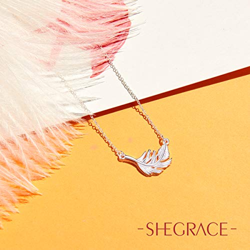 SHEGRACE Collana da Donna con Pendente di Piume in Argento 925 Placcato Platino Collana, Regolabile, 420mm