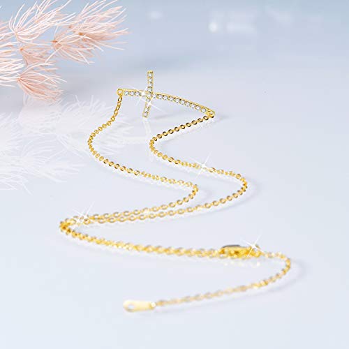 SHEGRACE Donna Collana in Argento 925, con Ciondolo Croce AAA Cubic Zirconia,D'oro,Collana Donna,Gioielli Donna,Regalo di festa, Regalo Donna/Ragazza/Moglie/Fidanzata...