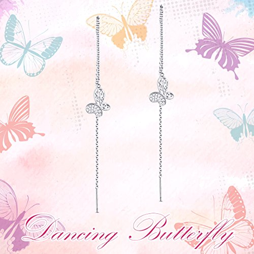 SHEGRACE Donna Orecchini Lunghi in Argento 925, con Ciondolo di Farfalla, Platino, Oro Rosa, Due Colori Disponibili, 13cm