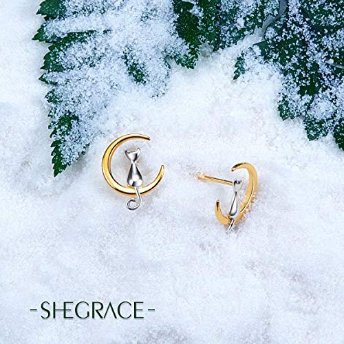SHEGRACE Orecchini da donna in puro argento Sterling 925, Ornamento Chatton Mignion seduto sulla Luna Platino/Oro/Oro Rosato, Argento sterling, senza pietra
