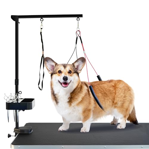 SHELANDY - Braccio per toelettatura per cani di taglia grande e piccola, 88,9 cm in altezza regolabile, due supporti per cani