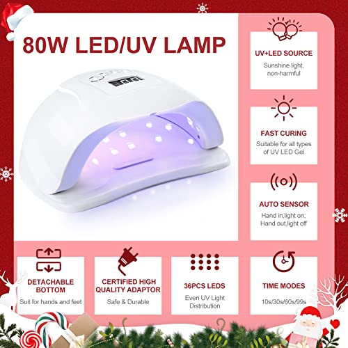 Shelloloh Kit Semipermanente Completo 80W Nail Lampada LED/UV,8pz Smalti Semipermanenti con Base Coat Top Coat con gli Strumenti Starter Kit Completo