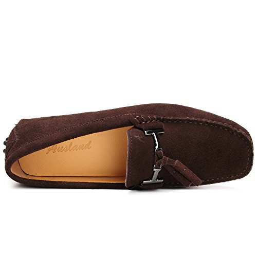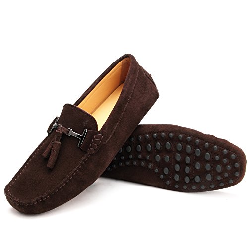 Shenduo Scarpe Uomo - Mocassini Uomo di Pelle Bucciata con Frangia comode Loafers Scarpe Casual D7157 Marrone 44