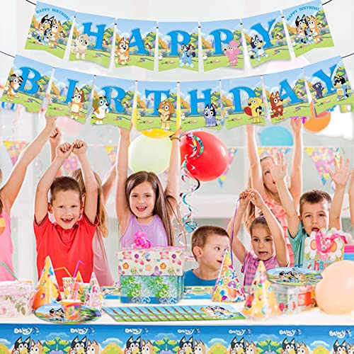 Shengo Bluey Dog,Decorazioni per feste di compleanno,per cuccioli e cuccioli,include striscione,decorazioni per torte,per feste di compleanno per bambini baby shower,forniture per feste di compleanno