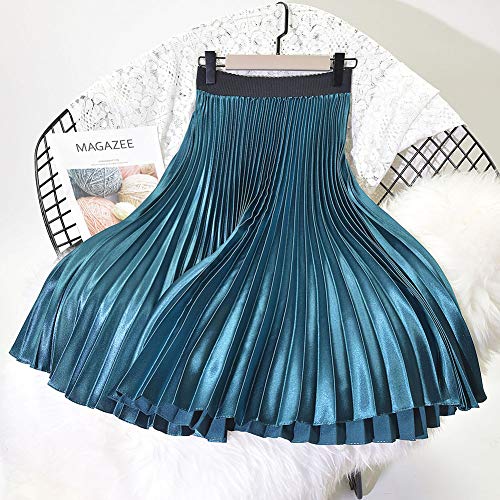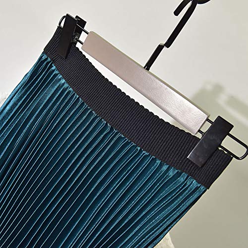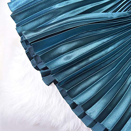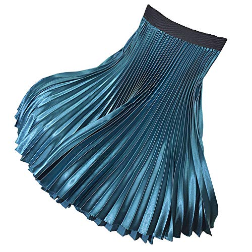 Shengwan Gonna Pieghe Donna Vita Alta Elastica Lunga Gonna da Plissettata Blu Pavone