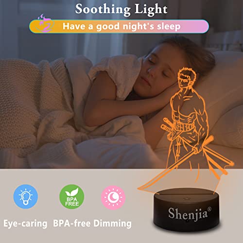 Shenjia 3d Led ONE PIECE Luce Notturna Character Commodity Lampada per la decorazione della stanza della casa dei bambini Regalo colorato per la luce notturna per i fan Merch (16 colori, A)...