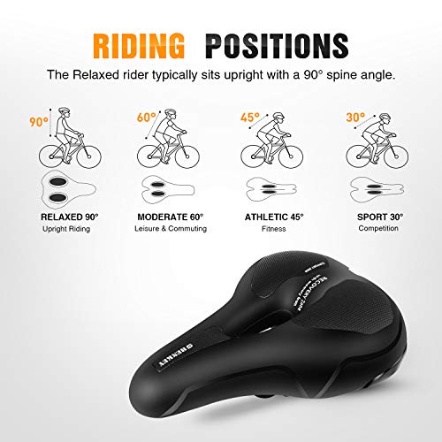 SEDILE BICICLETTE COMODO: Il sedile della bici è imbottito da una spessa schiuma di memoria ad alta densità più spessa, morbida e confortevole. Può assorbire lo shock, ridurre il dolore in modo efficace, proteggere meglio il sedere, dire addio al dolore e godersi il divertimento di andare in bicicletta ora.