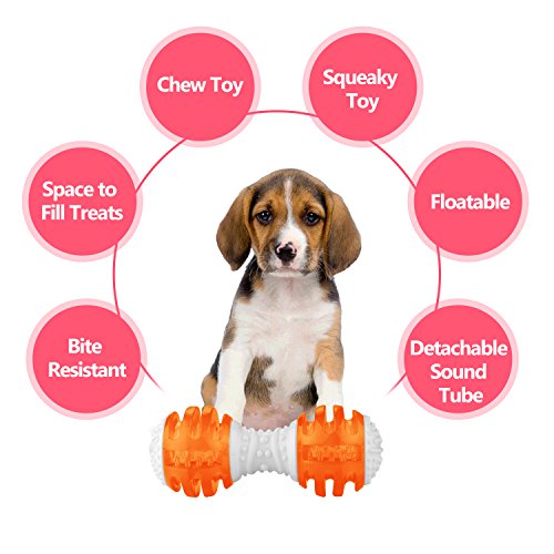 Shennosi - Giocattolo da masticare a forma di manubrio per cani in gomma resistente ai morsi per l'igiene dentale, con canale suono rimovibile, atossico, forte massaggio dentale