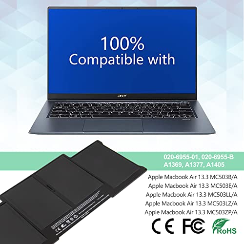 Shentec A1405 Batteria per MacBook Air 13" A1377 A1466, Adatta Anche A1369 A1496 020-6955-01, 020-6955-B [Li Polymer 7.6V 55Wh]