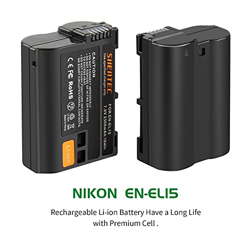 2X Shentec Batteria EN-EL15 2300mAh Compatibile EN-EL15 EN-EL15a EN-EL15b EN-EL15c MH-25 MH-25a D7100 D750 D7000 D700 D7200 D810 D810A D850 D800 D800E D500 D800E D610 D600 Z6 Z7