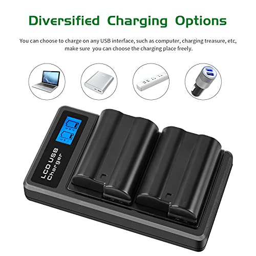Realizzato con cLa confezione include 1 * caricatore doppio, 2 * batterie di ricambio per Nikon EN-EL15, 1 * cavo USB (senza caricatore presa)elle della batteria di alta qualità, protezione multi-circuito integrata, sovraccarico, cortocircuito, alta temperatura e protezione contro le sovratensioni, nonché costruzione ignifuga.