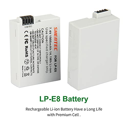 2X Shentec Batterias LP-E8 7.4V 1900mAh Li-ion per Canon LP E8 Rebel T3i T2i T4i T5i EOS 600D 550D 650D 700D Kiss X5 X4 Kiss X6 LC-E8E
