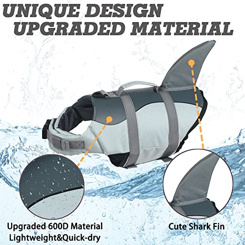 Design elegante: i nostri giubbotti di salvataggio per cani hanno un design accattivante con pinna di squalo unica per rendere il tuo cane carino e divertente. Il nostro giubbotto di salvataggio dello squalo cane non è solo uno strumento ma anche un ornamento.
