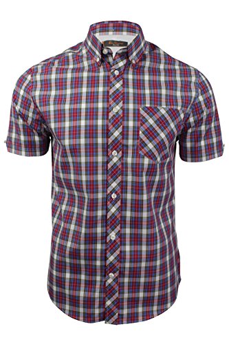Ben Sherman - Camicia Casual - A Quadri - con Bottoni - Maniche Corte - Uomo Red Medium