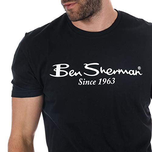 Mens Ben Sherman script logo T-shirt in navy- breve manicotto a coste collari Crew Collo dritto hem- branding stampato a chest- spalla all' orlo 66 cm approximately- 100% cotone. Lavabile in lavatrice (Ref: 0053389 navmeasurements sono destinati a solo scopo informativo