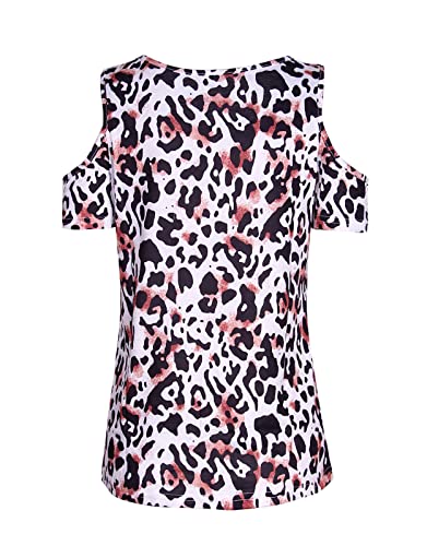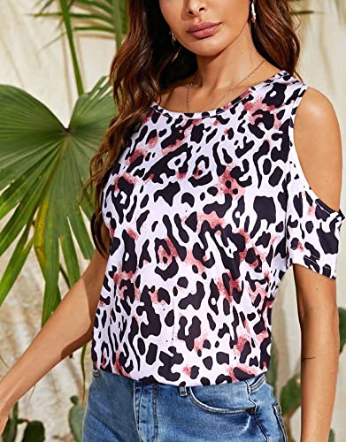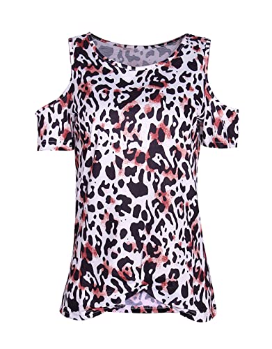 Shermie - Camicetta da donna con spalle fredde, a maniche corte, girocollo, tinta unita