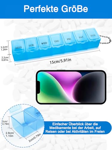 【Facile da usare】Porta pastiglie giornaliero è semi trasparente, in modo da poter vedere le pillole. Ogni organizzatore della scatola della medicina ha sette scomparti. Ogni scomparto della pillola: 1,3 x 1,2 x 0,8 pollici.