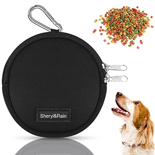 Sheryl&Rain Porta Crocchette per Cani Addestramento con Zip,Porta Premietti per Cani Piccoli,Mini Borsa Addestramento Cane,Sacchetto Addestramento Cane Nero con Moschettone per Viaggio O Uso Esterno