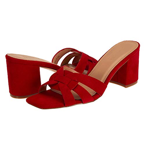 SheSole Sandali da donna con tacco a blocco, scarpe con tacco alto, colore: nero/rosso, Rosso (Colore: rosso), 38 EU