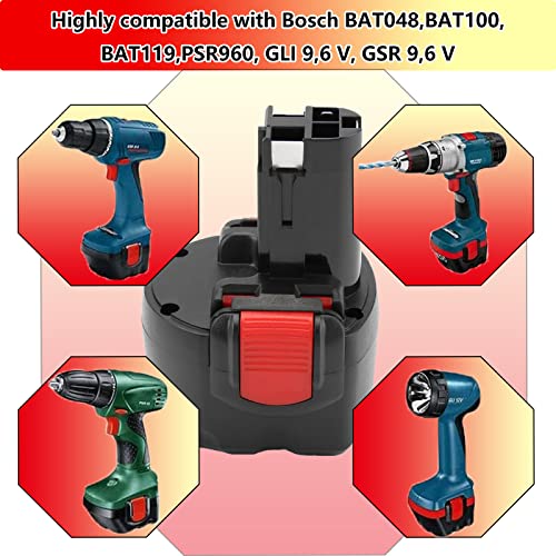 SHGEEN 2 pezzi BAT048 9.6V 3.0Ah Batteria di ricambio per Bosch 9.6V BAT048 BAT100 BAT119 2607335272 2607335461 PSR960 GSR9.6 GDR 9.6V