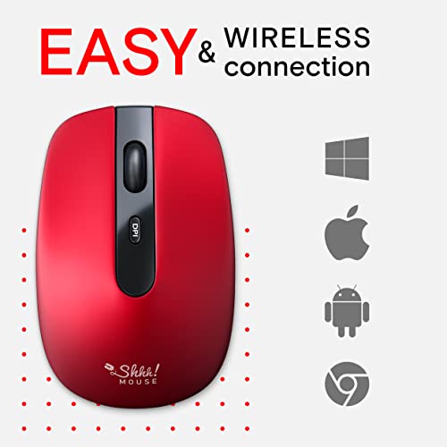 SHHHMOUSE Wireless Mouse Silenzioso, Compatto e Portatile, Batterie Incluse, Perfetto per Computer e Portatili, Compatibile con Mac e PC (Rosso)