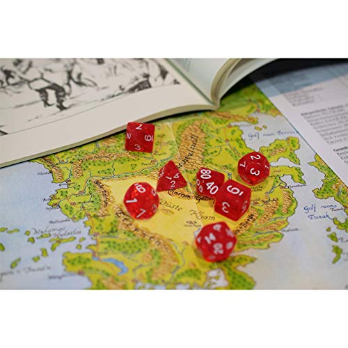 Shibby 7 Dadi poliedrici per Giochi di Ruolo e da Tavolo di Colore Trasparente Rosso con Sacchetto