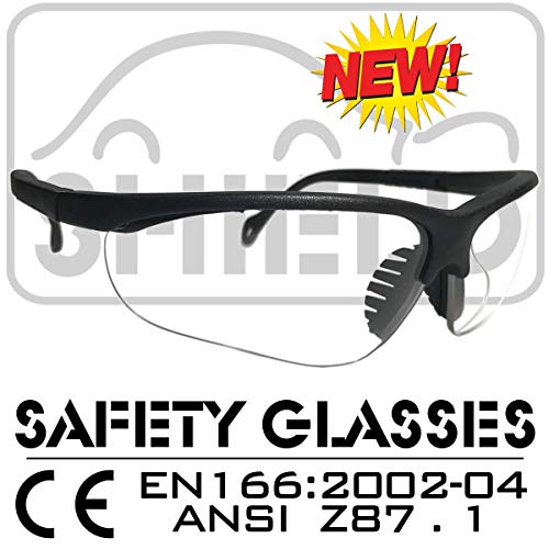 Shield, occhiali di protezione/balistici, da lavoro, di sicurezza, da ciclismo, a norma DIN EN-166, trasparenti