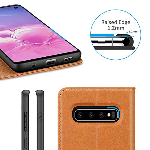 SHIELDON Cover Galaxy S10, Custodia Galaxy S10 in Pelle [RFID Blocking] Portafoglio con [3 Slot per Schede] TPU Antiurto [Funzione Stand] Cover a Libro per Galaxy S10 (6,1 pollici) - Marrone