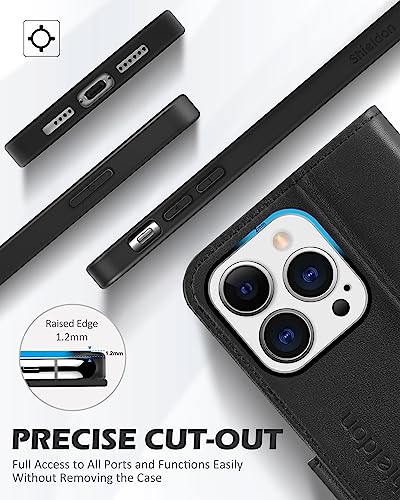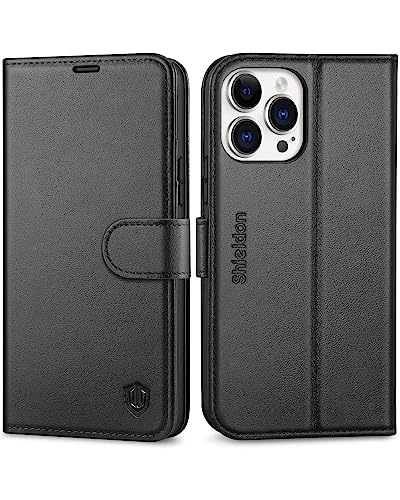 SHIELDON Cover per iPhone 13 Pro Max 5G, Cover Chiusura Magnetica Vera Pelle Antiurto [Blocco RFID] Slot Schede Portafoglio Custodia Cavalletto Compatibile iPhone 13 Pro Max (6,7 pollici, 2021), Nero