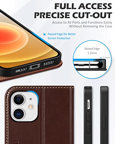 SHIELDON Cover per iPhone 12, Custodia iPhone 12 Pro Vera Pelle Blocco RFID Portafoglio Slot Schede Resistente Cover Cavalletto Flip Caso Magnetico Compatibile iPhone 12/12pro (6,1" 2020), Caffè Retrò