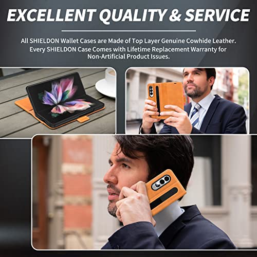 SHIELDON Cover Vera Pelle per Galaxy Z Fold3 Custodia Protezione Portafoglio Antiurto S pen Storage Portacarte Blocco RFID Flip Magnetica Supporto Compatibile con Galaxy Z Fold 3 (2021), Marrone