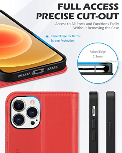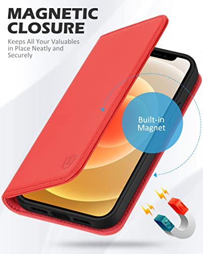SHIELDON Custodia per iPhone 12 Pro Max, Cover Antiurto Vera Pelle Portafoglio Slot Schede Blocco RFID Cover Cavalletto Flip Caso Magnetico Compatibile iPhone 12 Pro Max (6,7" 2020), Rosso