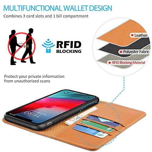 SHIELDON Custodia per iPhone XS Max, Cover Vera Pelle Flip Caso Magnetico Auto On/Off Portafoglio Slot Schede Blocco RFID Cover Cavalletto Antiurto Compatibile iPhone XS Max (6,5" 2018), Marrone