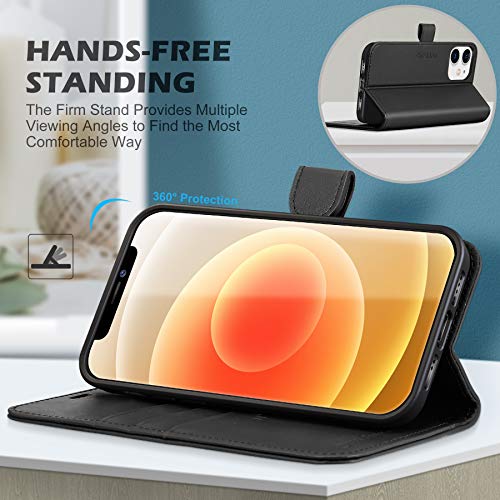 SHIELDON Custodia per iPhone 12 Mini, Cover Vera Pelle Portafoglio Slot Schede Blocco RFID Resistente Chiusura Magnetica Cover Cavalletto Protezione Compatibile iPhone 12 Mini (5,4" 2020), Nero