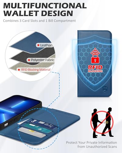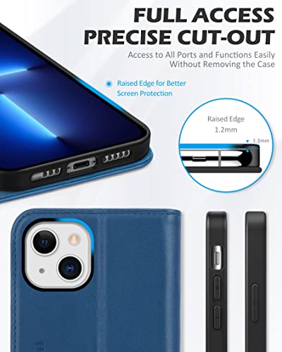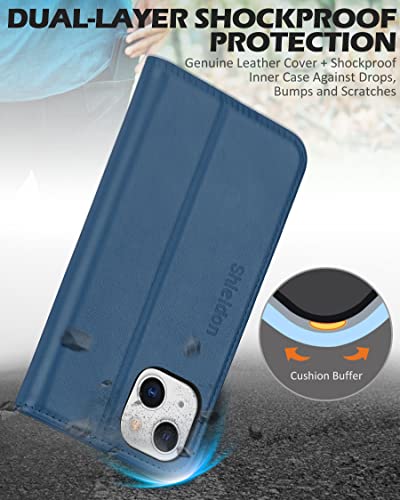 SHIELDON Custodia per iPhone 13, Cover Vera Pelle Resistente Portafoglio [Blocco RFID] Slot Schede Flip Caso Magnetico Cover Cavalletto Protezione Compatibile iPhone 13 (6,1 pollici 2021), Blu Reale