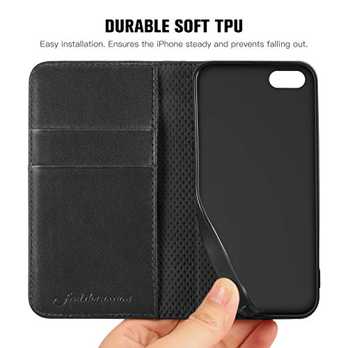 SHIELDON Custodia iPhone SE, Custodia iPhone 5S, Cover TPU Portafoglio di Vera Pelle Slot per Schede, Funzione Stand, Stile Libro, e Magnetica Chiusura per iPhone SE / 5S / 5 (2016) - Nero