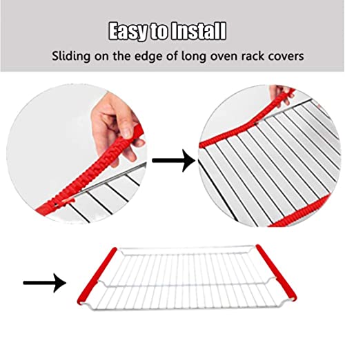 4PCS Oven Rack Shields Oven Rack Edge Silicone Anti-Scalding Protector Oven Heat Resistant Thread Shape Rack Guards Red