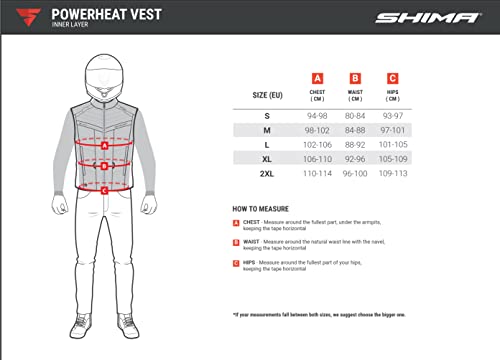 SHIMA POWERHEAT - Gilet Riscaldato, 3 Impostazioni di Temperatura USB Elettrico Riscaldamento Giacca per Uomini Donne, resistente al vento inverno abbigliamento caldo per moto all'aperto (Nero, L)