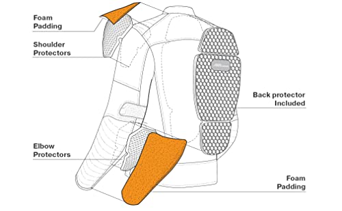 PROTEZIONE - Protezioni certificate CE per schiena, spalle e gomiti e imbottitura extra in schiuma su spalle e avambracci.