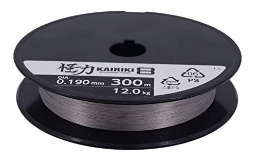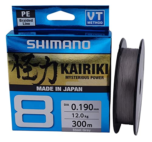 SHIMANO Kairiki 8, 300 Meter, Grigio Chiaro, 0.190mm/12.0kg, Filo da Pesca Intrecciato, 59WPLA68R14