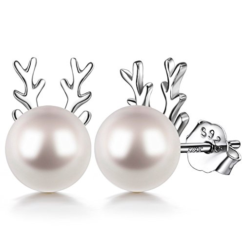 J.SHINE Orecchini di Perle Donne Lucky Antlers Argento Sterling 925 con Perle d' Acqua dolce Aaturale 6 mm 3A
